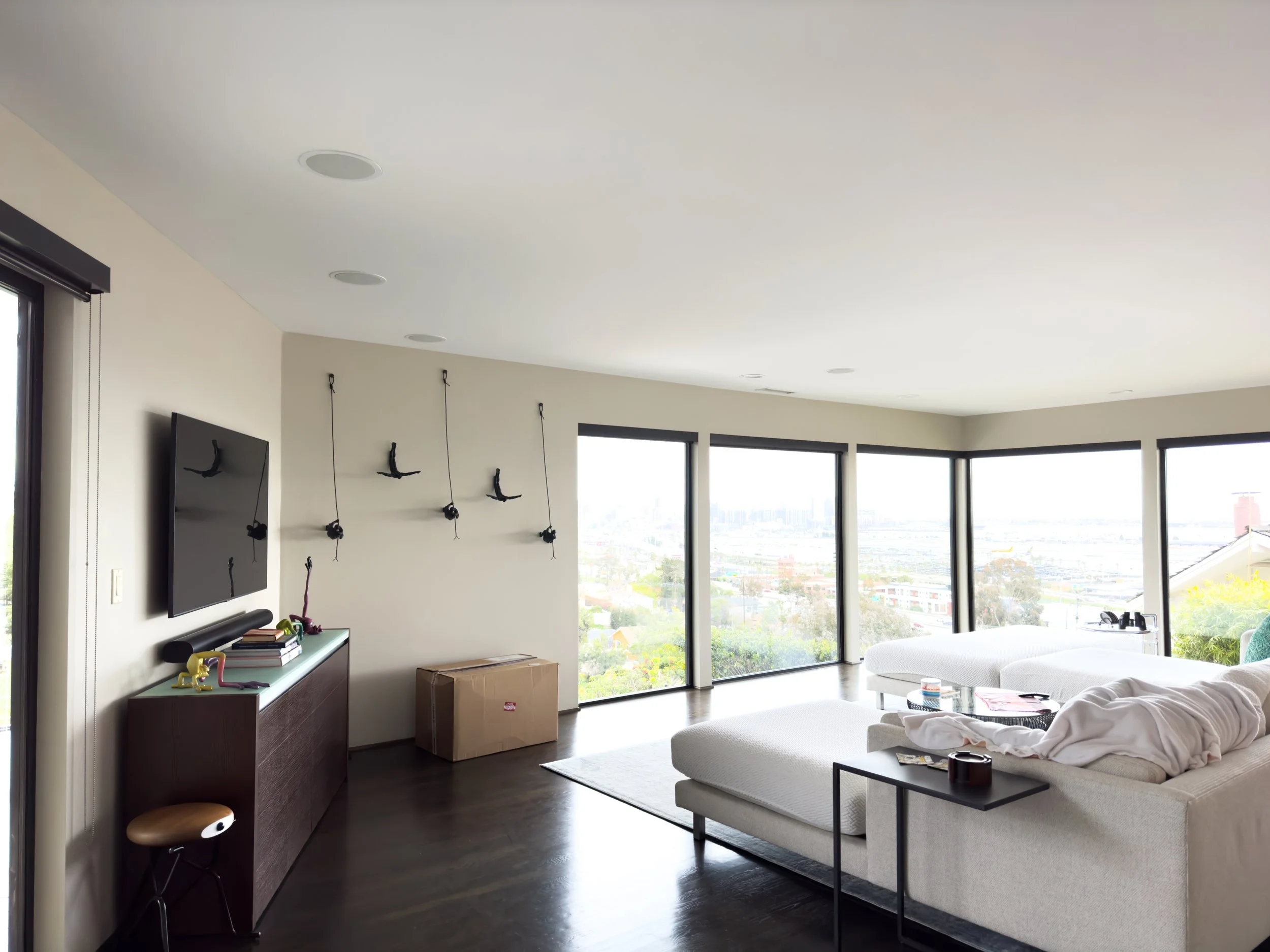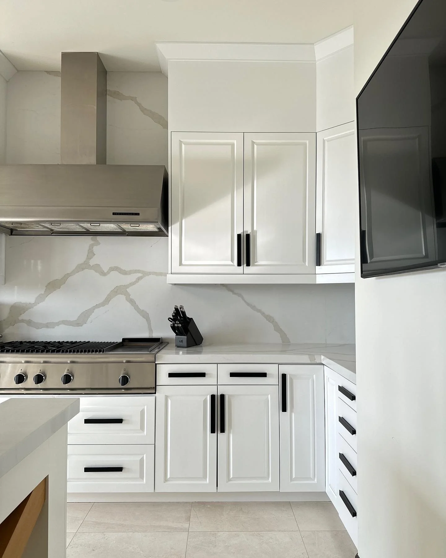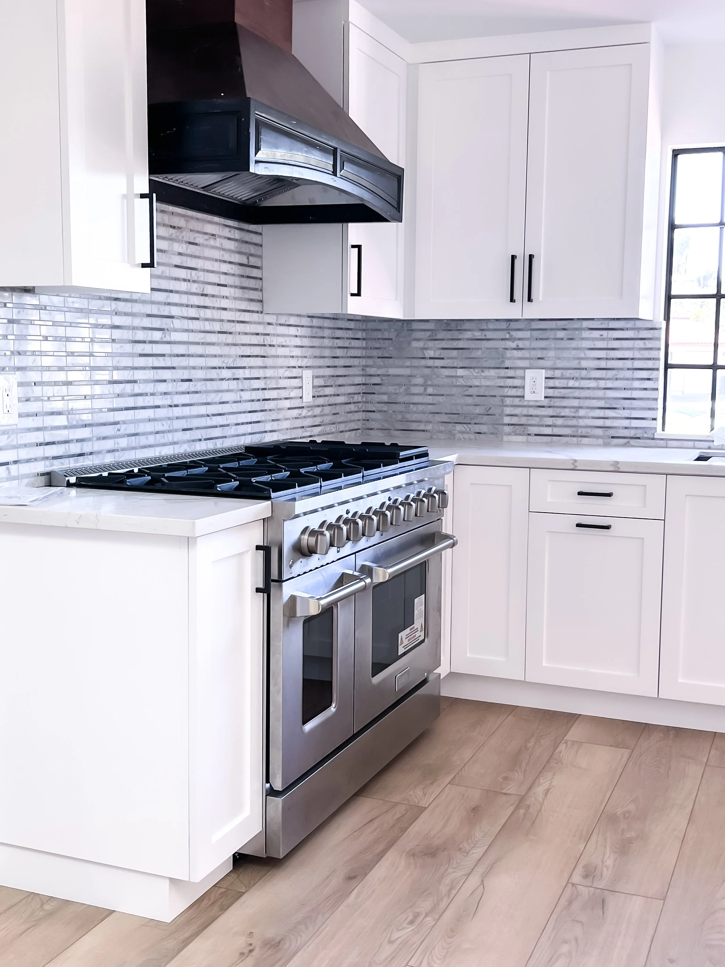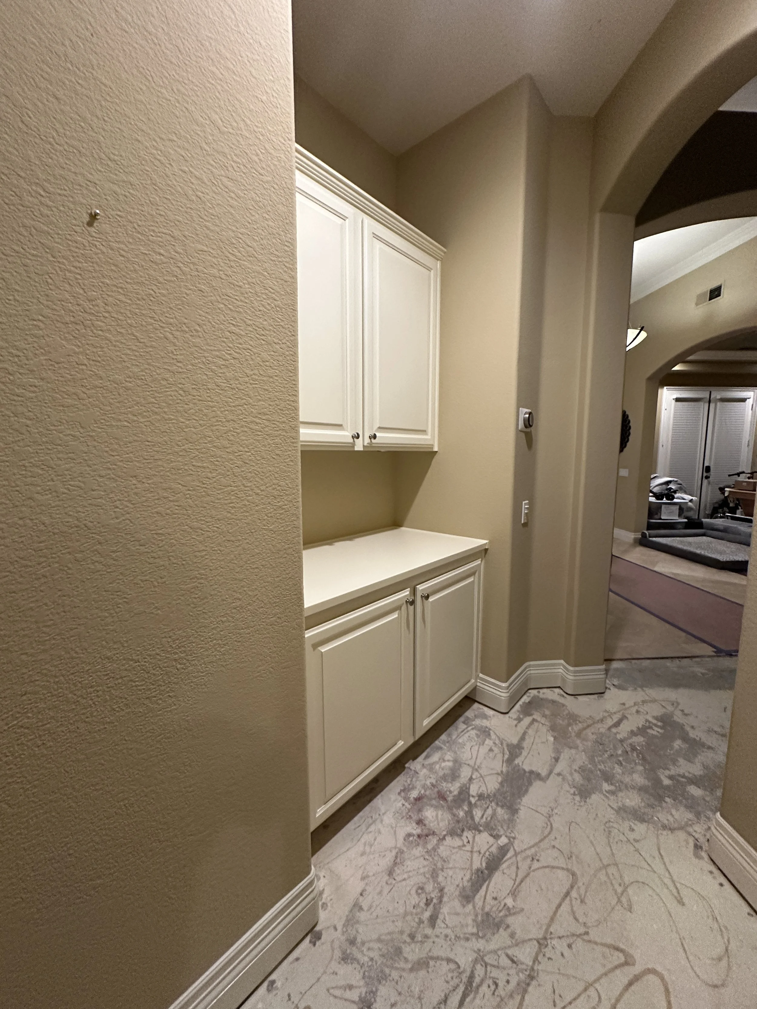 Drywall repair, texture and repainting walls all throughout the house, rehanging and repainting cabinets